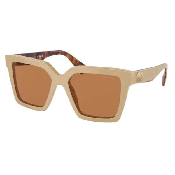 Óculos de sol em acetato com design quadrado grande para uma atitude sofisticada, mas contemporânea. A armação na parte da frente grande é combinada com hastes decoradas com o logotipo Miu Miu.