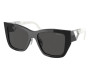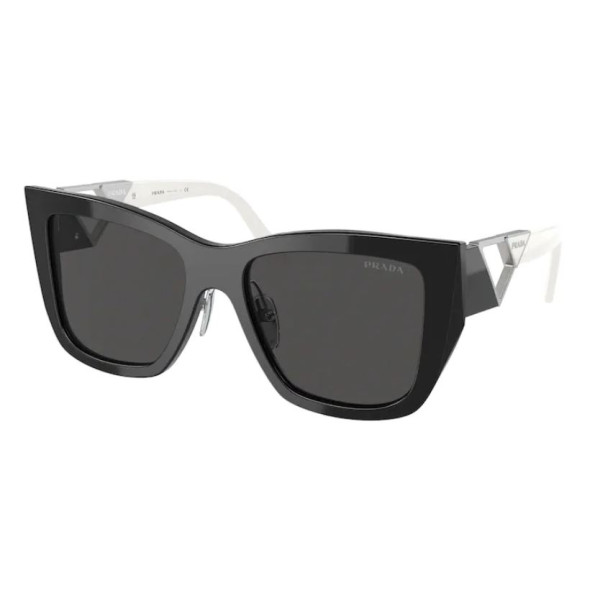 Óculos de sol com formato quadrado feminino. A armação gatinho elegante é valorizada pelas hastes largas, que se conectam naturalmente com uma versão refinada em metal do triângulo Prada decorado na parte de dentro por um aplique elegante com o logotipo de letras.