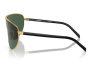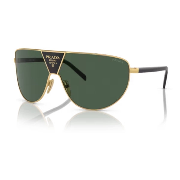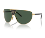 Óculos de sol em forma de gota com um toque contemporâneo. A armação em metal define as lentes curvas e arredondadas, enquanto o icônico logotipo Prada se destaca no centro da ponte, destacado pela cor contrastante.