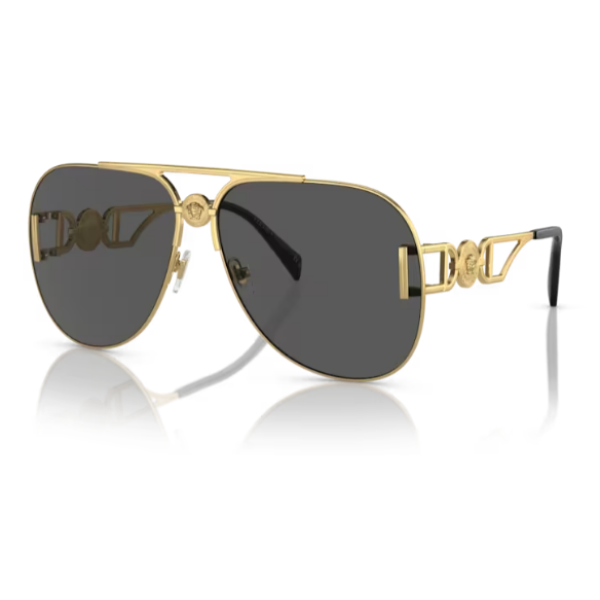 Estes óculos de sol aviador Medusa Biggie têm armações de metal finas, detalhadas com uma ponte de nariz dupla e são acentuadas com uma ferragem Medusa nas têmporas e na ponte do nariz.